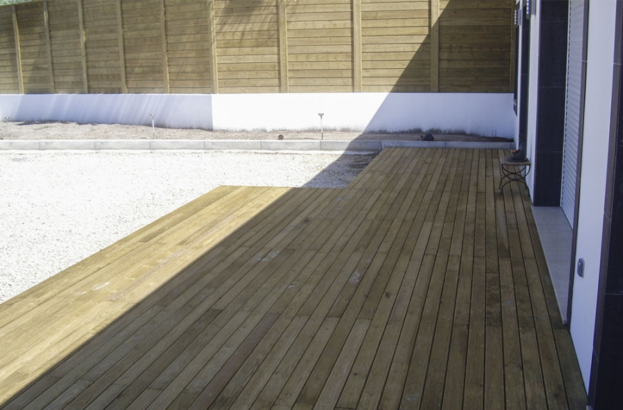 Soluções de decks e mobiliário exterior em madeira tratada.